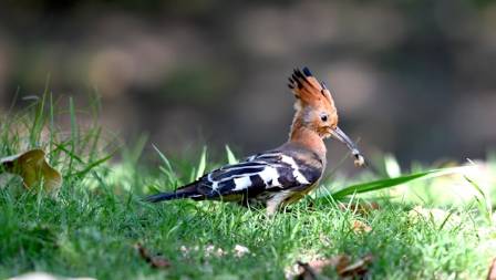 If a piece of prey is particularly large or difficult to manage, the Hoopoe will strike it against a hard surface, such as a rock. This behavior serves to kill the insect and remove indigestible parts like legs or wings before consumption. While they usually forage solo on the ground, their strong, rounded wings also allow them to snatch insects mid-flight.